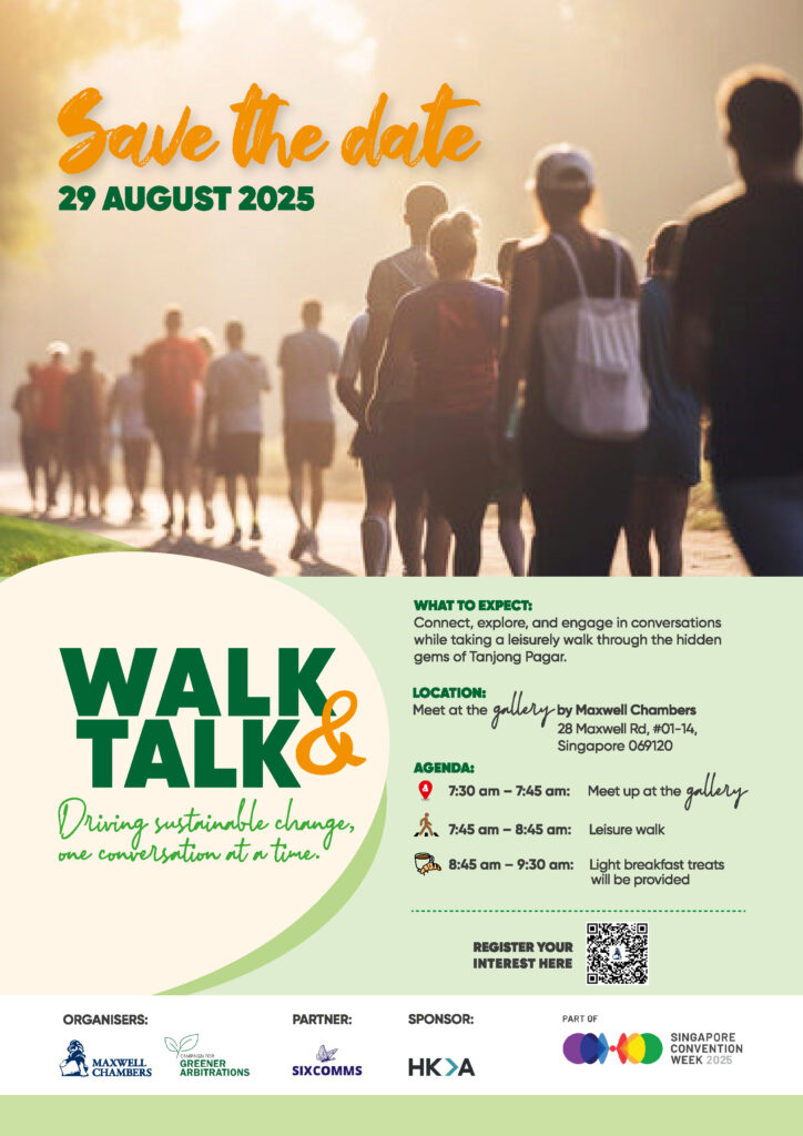 Partnering with SIXCOMMS and sponsored by HKA, we look forward to engaging with the ADR community through meaningful conversations in a relaxed environment setting, combined with topics on sustainability and wellbeing. Walk & Talk is a great chance to build relationships while connecting with those who share passion for making a difference.